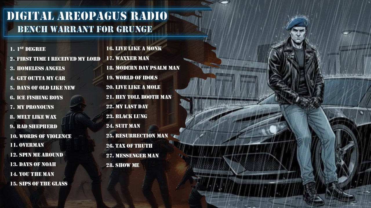 Digital Areopagus Radio presents "Bench Warrant For Grunge," an album that puts the genre itself on trial. This is a raw, unfiltered dive into the spiritual angst and social decay that defined an era, now updated for the end times.